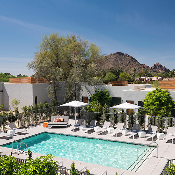 On the south side of the property lies The Retreat at Andaz —set apart for the ultimate in exclusivity for wedding guests, corporate retreats, a celebrity get-away, or private social gathering with family and friends. This secluded, “resort within a resort” features four bungalows, with a total of 22 rooms surrounding a private pool and shaded lawn. The Albers House is The Retreat’s luxurious suite, furnished with chic, mid-century modern furnishings and eye-catching art, has plenty of space for entertaining, or keeping all to yourself. A cozy patio off the master bedroom is appointed with an outdoor shower. The private, exterior entertaining patio comes alive in the evening with a fire pit surrounded by cushioned banco seating. The views of Camelback Mountain will take your breath away, night or day. The Retreat is convenient to the Palo Verde Spa & Apothecary, Fitness Center, and meeting and event spaces.